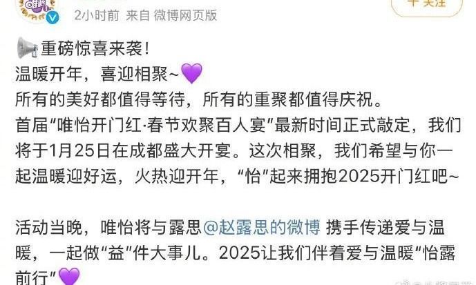 1月15日,赵露思的新年首秀消息传来,让众多粉丝和媒体都为之振奋。据某品牌宣布,赵露思将于1月25日在成都举办线下见面会,这标志着她在生病不到一个月后正式复工。